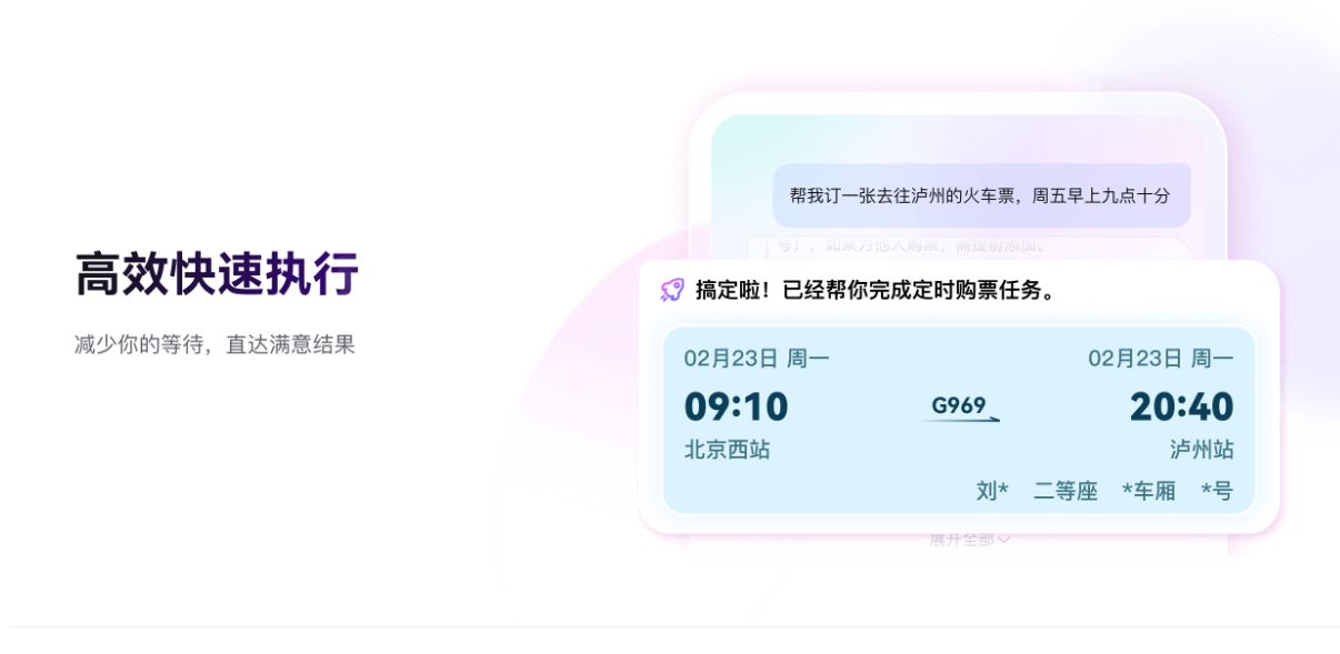 【自然语言任务执行】无需编写脚本或复杂操作,只需用口语化指令下达需求,如“帮我搜索北京到长沙2月18日价格最低的机票”“下载王一博最近三条高赞抖音视频”,AI即可精准理解并执行。