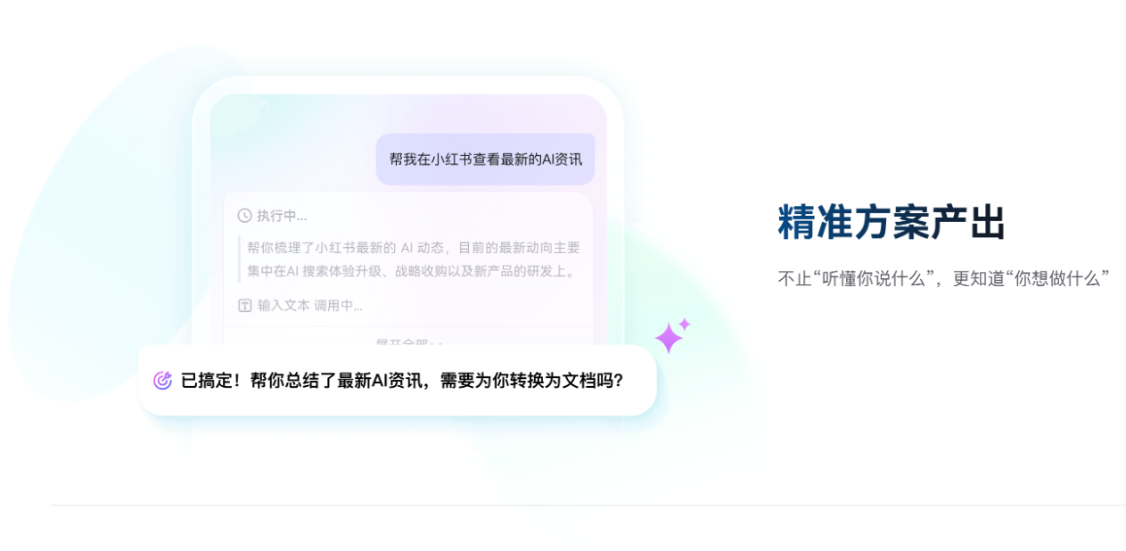 【跨App协同操作】打通手机内各类应用的壁垒,实现多App联动任务,例如“打开WSJ浏览首页前三篇文章,总结标题后通过微信发给我”“把公众号文章同步发到今日头条、知乎、小红书”,全程无需人工干预。
